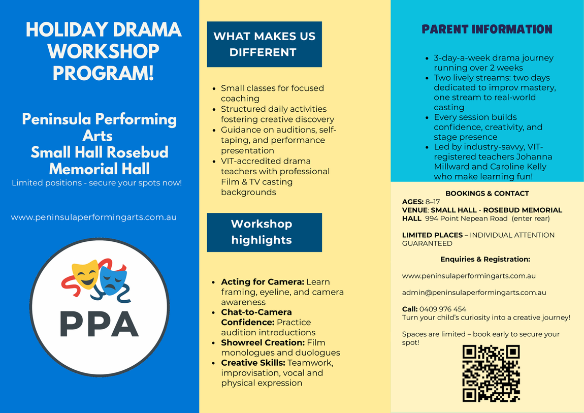 This program is designed to be engaging, supportive, and professional, ensuring every child feels empowered and inspired to take their drama journey to the next level with energy and focus.
